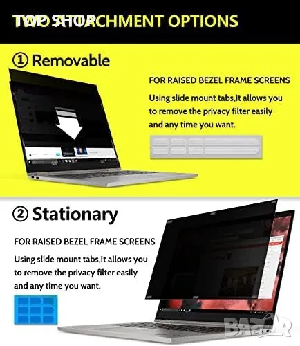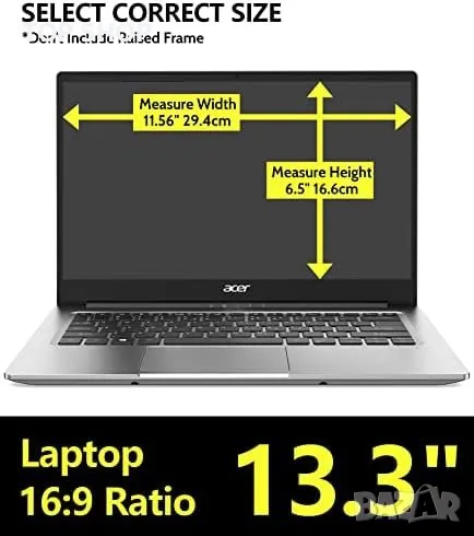 Проектиран за 13,3" (16:9) лаптопи, този скрийн протектор за поверителност е подходящ за HP, Lenovo, Dell, Acer, Asus, Sony, Samsung, Envy, Toshiba и други големи марки.