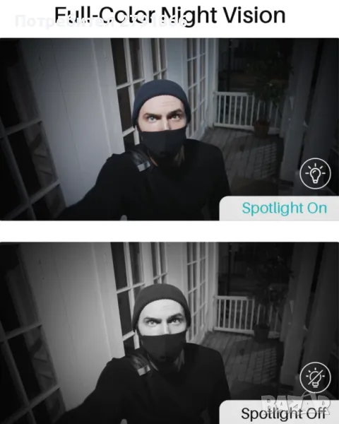 - 【2K по-ясно видео】Качеството на картината е подобрено с 65% от 1080p. Със 135 градуса по-широк зрителен ъгъл и 10x цифрово увеличение всеки детайл от вашия имот е в ръцете ви. Интегрираният прожектор и цветното нощно виждане правят ясно през нощта.