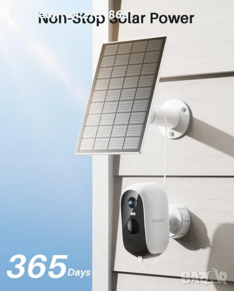 - 【Forever Power】Оборудвана със слънчеви панели и по-голям капацитет на батерията, външната охранителна камера WUUK е проектирана за работа при различни метеорологични условия. Захранван от слънчева енергия нон-стоп, вечна охрана на дома, няма нужда да сваляте камерите, за да ги заредите.