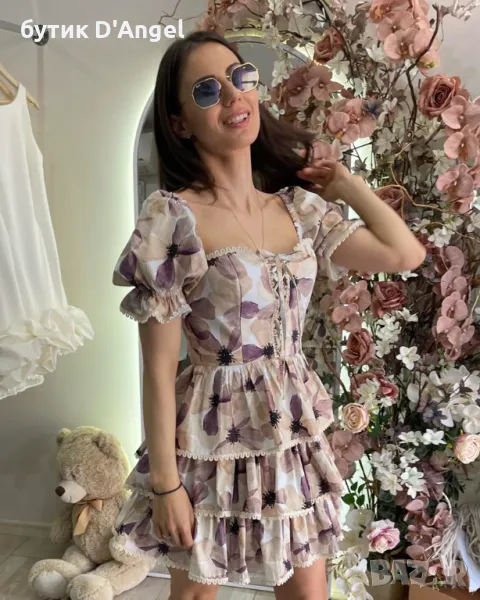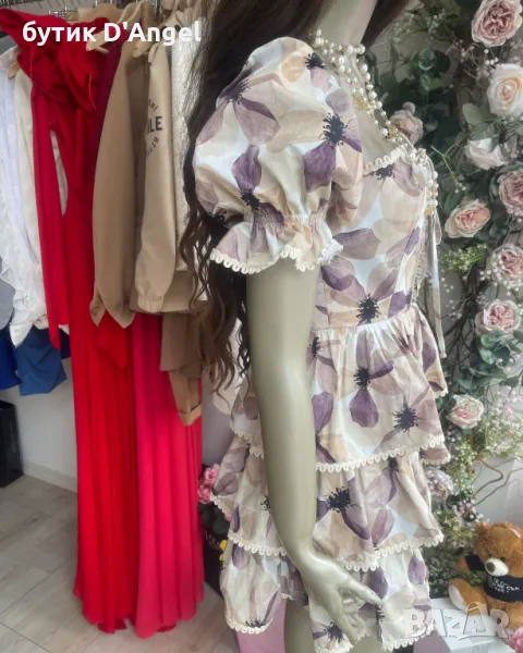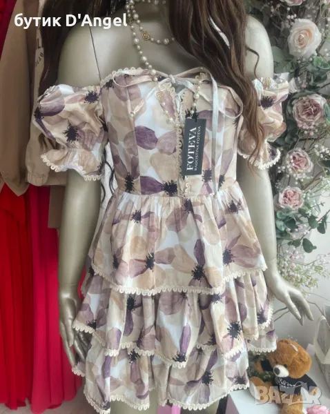 Горната част на роклята е бюстие, а долната част е разкроена.