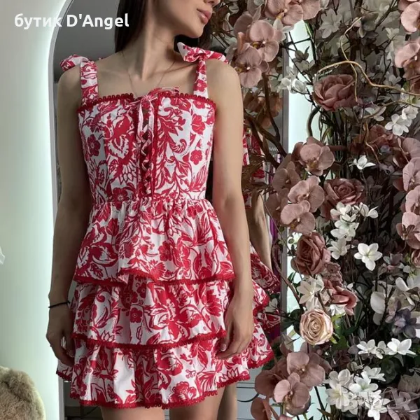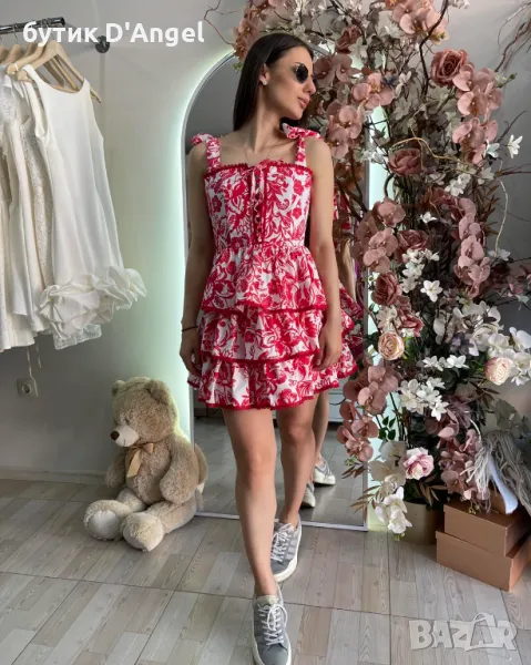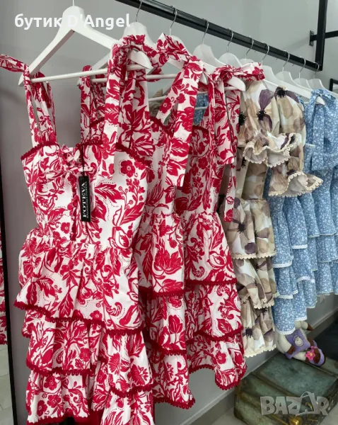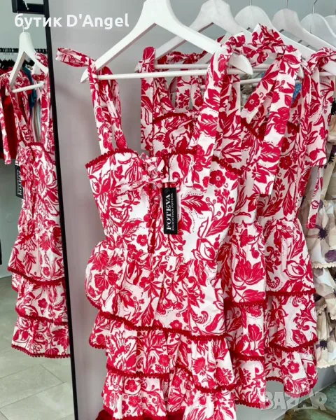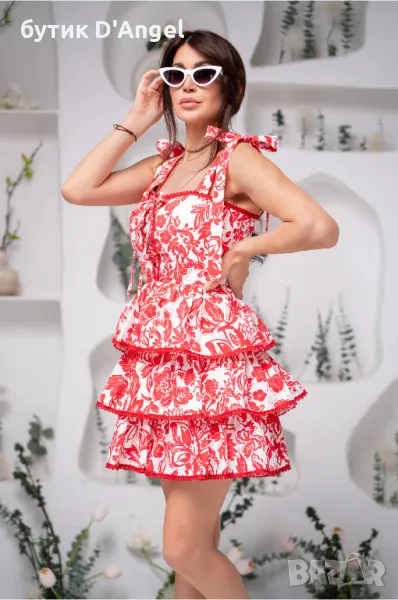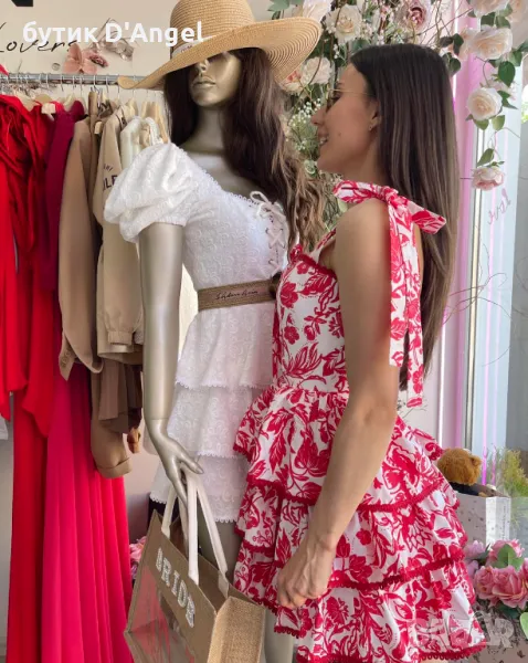 Горната част на роклята е бюстие, а долната част е разкроена.