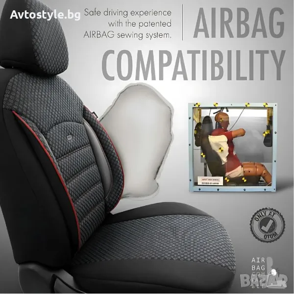 Тапицерия за седалки Otom Sport Plus PLS102 (черно/червено) разполага с TUV сертификат и са съвместими със странични AirBag