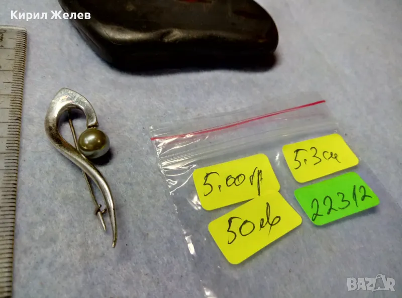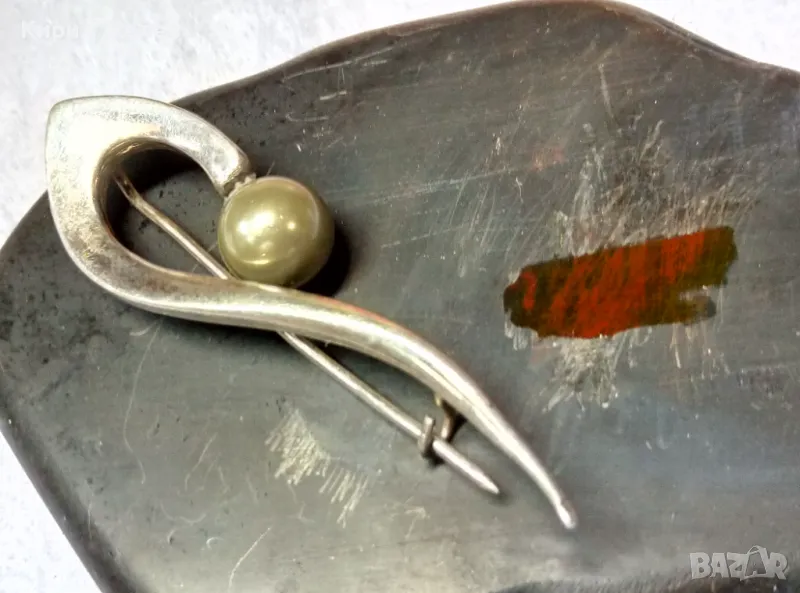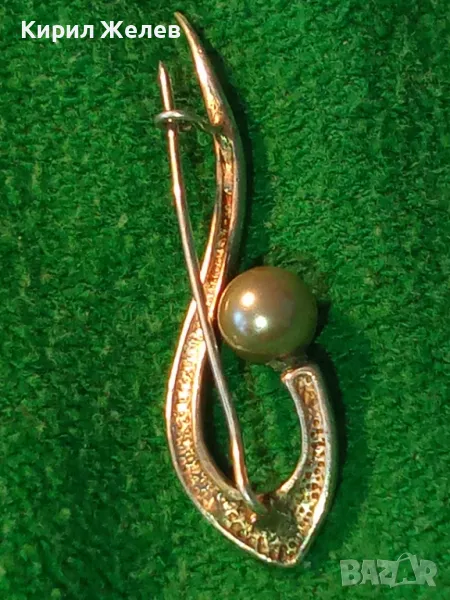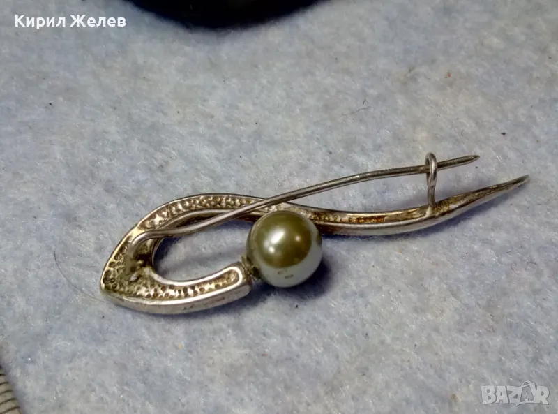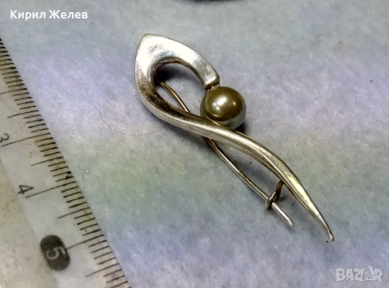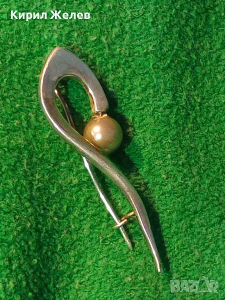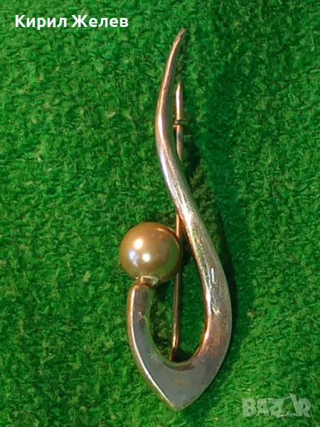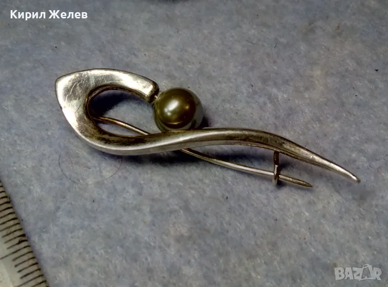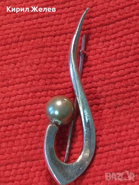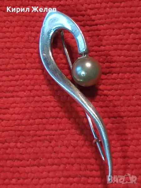 СТАРА АР НУВО СРЕБЪРНА БРОШКА СРЕБРО ВИСОКА ПРОБА с ЕСТЕСТВЕНА СИВА ПЕРЛА МАЙСТОРСКА ИЗРАБОТКА 22312