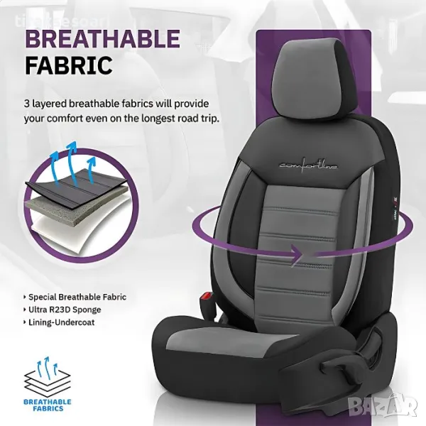 Тапицерия за кола Otom Comfortline CMF206(Черно/Сиво) разполага с TUV сертификат и са съвместими със странични AirBag въглавници.