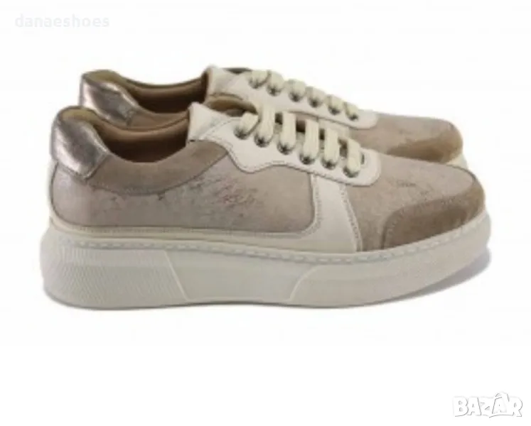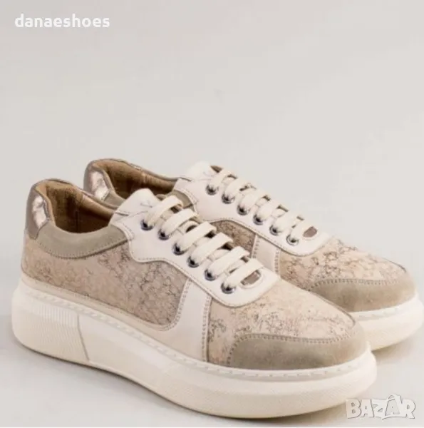 Дамски спортни обувки от естествена кожа в бежов цвят → Обява 49959729
