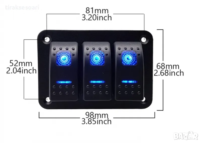 Панел с 3 бутона предназначени за: лед баровe,фарове,ОФРОУД джипове, автомобили, камиони, лодки,яхти, каравани и т.н.