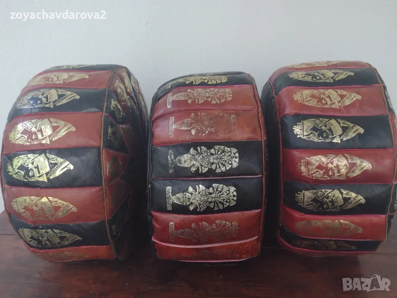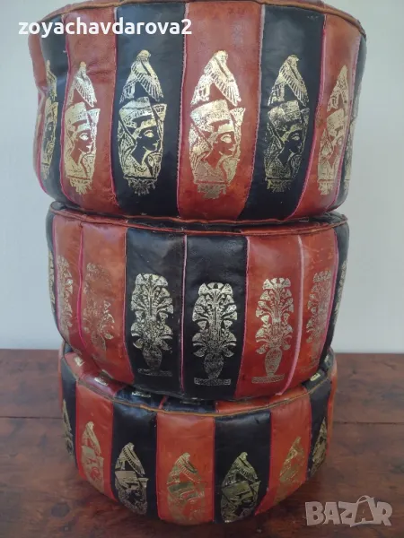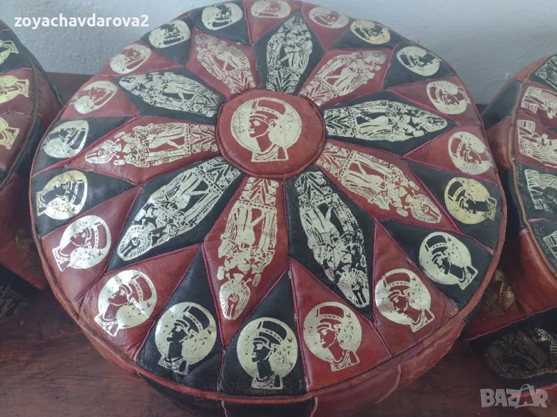 ПУФОВЕ ИЗЦЯЛО ОТ 100% ЕСТЕСТВЕНА КОЗЯ КОЖА И РЪЧНА ИЗРАБОТКА - ШИТИ И РИСУВАНИ РЪЧНО С ДЕКОР НА НЕФЕРТИТИ И ЕГИПЕТСКИ ФАРАОНИ, КРЪГЛА ФОРМА. ПЪЛНЕЖЪТ В ПУФА Е МОЙ, ВИЕ ПО ЖЕЛАНИЕ МОЖЕ ДА СМЕНИТЕ С ВАШ. ИЛИ: ПУФОВЕ В ТРАДИЦИОНЕН ЕГИПЕТСКИ СТИЛ ЗА ИЗПОЛЗВАНЕ КАТО СТОЛЧЕ ЗА КРАКА ИЛИ УДОБНО ДОПЪЛНИТЕЛНО МЯСТО ЗА СЯДАНЕ НА МАЛКИТЕ. НАЛИЧНИ 3 БРОЯ. ПУФЪТ (СНИМКА 1) Е С РАЗМЕРИ: ДИАМЕТЪР 43 СМ., ВИСОЧИНА 21 СМ., ОСТАНАЛИТЕ ДВА: ДИАМЕТЪР 42 СМ., ВИСОЧИНА 21 СМ. ОБЯВЕНАТА ЦЕНА Е ЗА 1 ПУФ.
