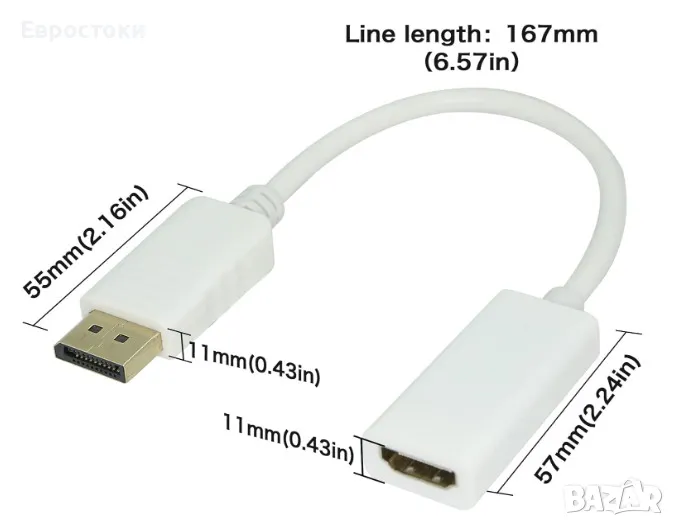 Компактен дизайн. Конверторът DisplayPort към HDMI е чисто бял, компактен и красив, с дължина на кабела 24,9 см, лесен за носене и не увеличава натоварването на паметта.