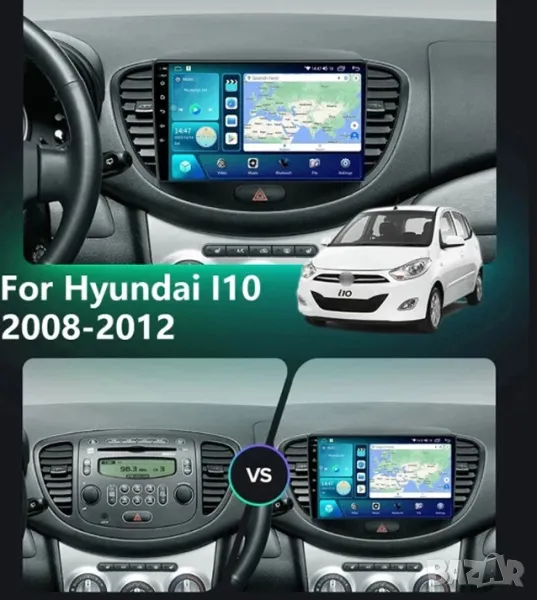 Мултимедия за Hyundai I10, 2007-2013, Двоен дин, Навигация, дисплей, плеър, екран, Android, I10