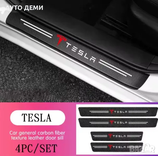 стикери за прагове на автомобил с надпис и емблема на Tesla .