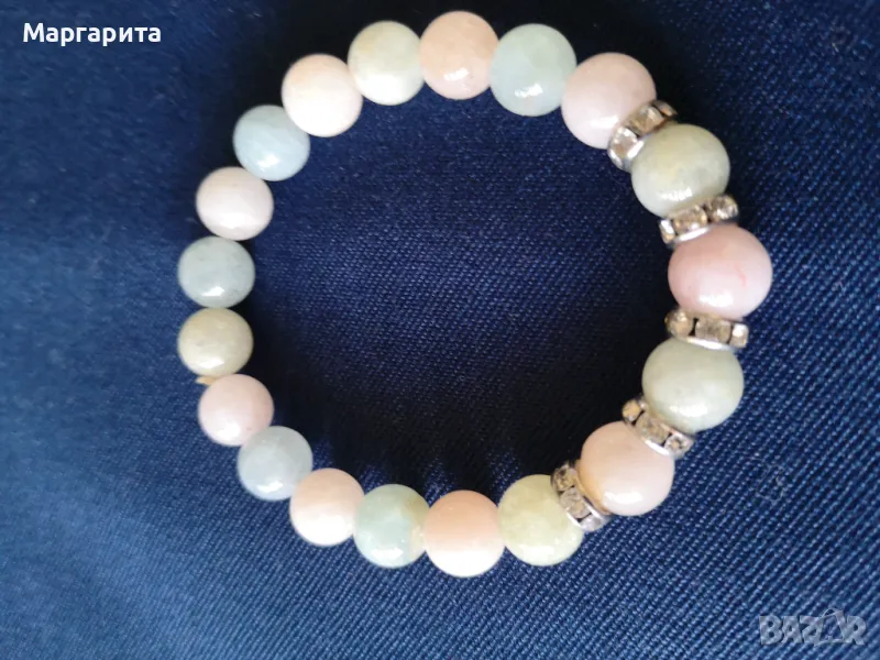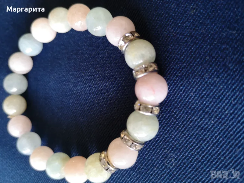 2. Гривна от топчета в бяло, розово и синьо, нова. Цена –