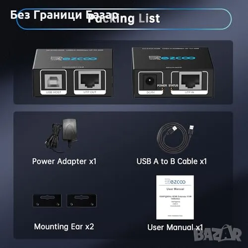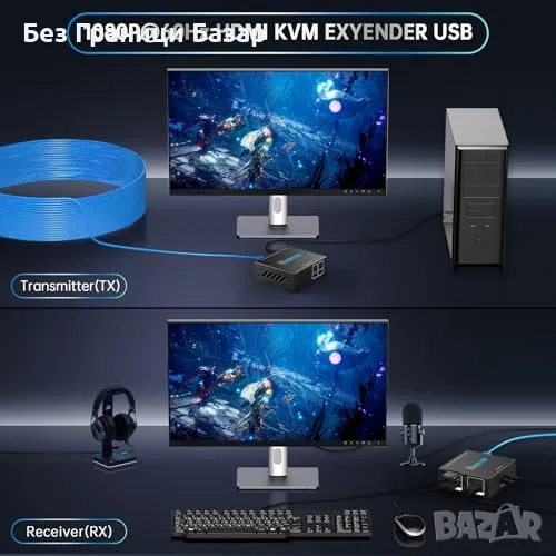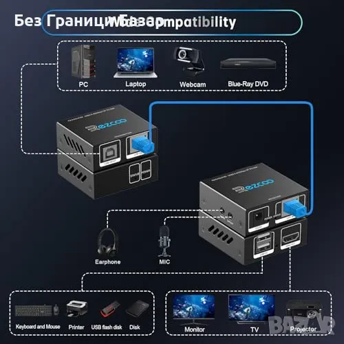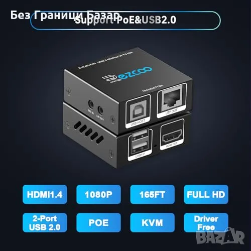 Нов HDMI USB Cat6 KVM Удължител 1080P 60Hz, 50м, HDR, PoE, Без Лаг