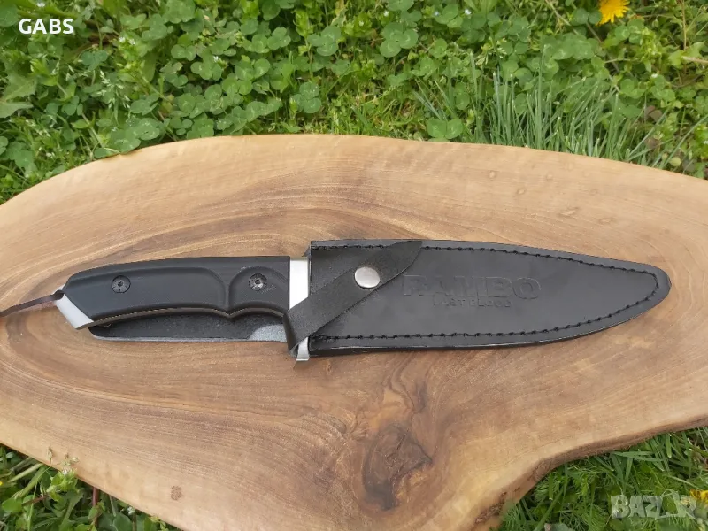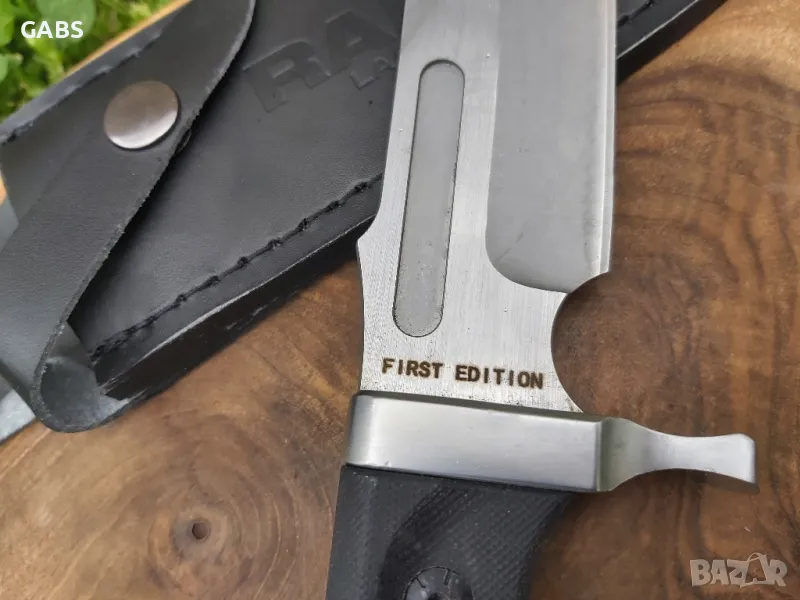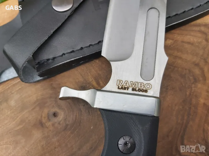 Масивен нож от култовата поредица RAMBO.Last Blood,First Edition фултанг с дръжка от G10 и черна кожена кания за колан.