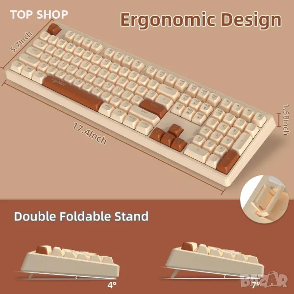 ретро дизайн със смесени цветове с тема за млечен чай осигурява сферични клавишни капачки с вдлъбната повърхност за удобно писане. Ергономично проектиран, той има стълбисто оформление и двойна сгъваема стойка за намаляване на натиска на китката, идеален за дълги игри или работни сесии. Разделената клавиатура и кабел подобряват преносимостта. Той е широко съвместим, поддържа системи като Windows 98SE до Windows 11, iOS, Linux и други, включващ plug-and-play функционалност с 2,0 m USB кабел.