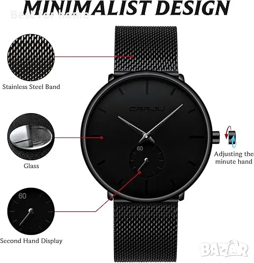 Минималистичен дизайн на часовници с уникална текстура на циферблата. Този класически семпъл мъжки часовник ще бъде много подходящ за всеки повод.