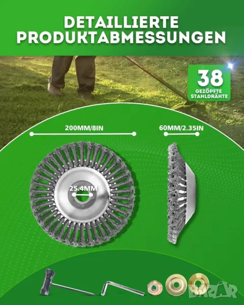 Ф20см Стомана телена четка за градински косачки и тримери