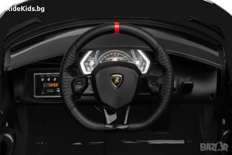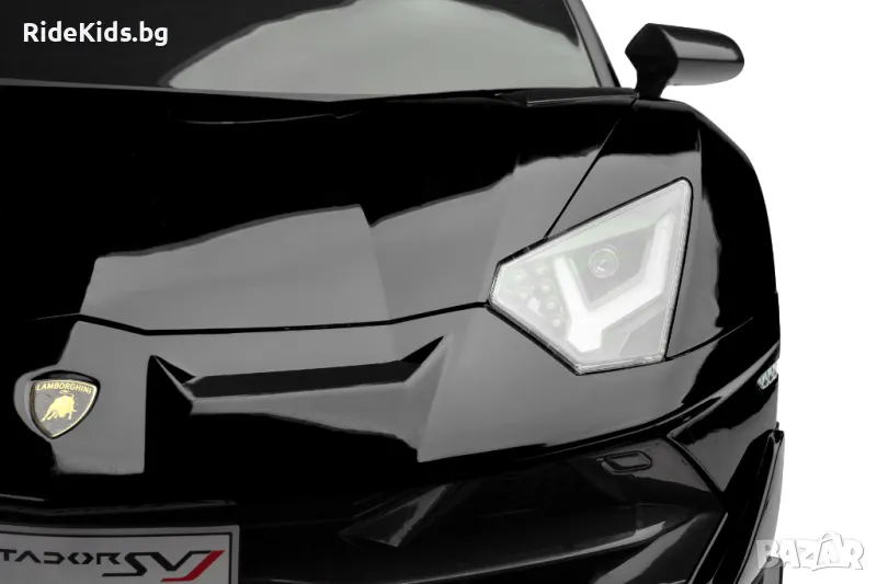 Lamborghini Aventador SVJ е лицензирана версия на необичаен суперавтомобил, който ще осигури на вашето дете незабравими моменти. Динамична линия на каросерията, характерни светлини, отварящи се врати, всичко това прави Lamborghini много оригинален. Интериорът е проектиран с внимание към детайла. Удобна седалка, облечена с висококачествена еко кожа. Концепцията е увенчана със златно лого на Lamborghini. На волана има клаксони и бутони за музикален плейър. Освен това отзад има скривалище за играчки. Колата се захранва от два 45W мотора 12V.