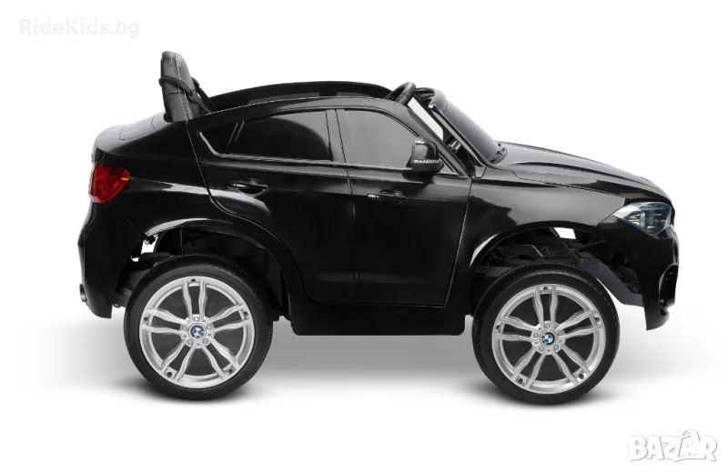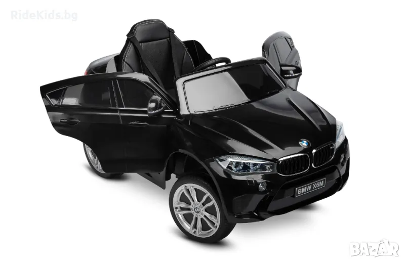 Батерийният автомобил Toyz BMW X6 M е лицензионна версия на безкомпромисния SUV на баварската марка, който е известен със съчетаването на спортно представяне с висококачествен дизайн. Това акумулаторно превозно средство ще достави много положителни впечатления на бъдещите шофьори. Комфортното шофиране ще бъде осигурено от тапицирана седалка от еко кожа с 3-точкови предпазни колани. Колата разполага с отваряща се врата, мултимедиен панел с вградени мелодии и USB букса за любими песни в MP3 формат. На волана има бутони за клаксона и звука на двигателя. Воланът се захранва от 2 батерии АА, така че детето може да го използва дори когато колата е изключена. колела от висококачествена EVA пяна и 2 мощни 45-ватови 12V мотора осигуряват забавление при шофиране.