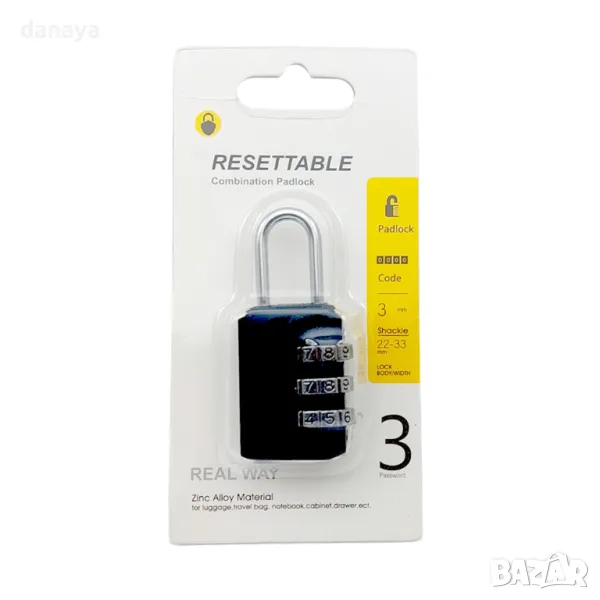 Малък катинар за куфар с 3 цифрен код за заключване. Катинар за багаж с шифър, с 3 отделения за цифрови комбинации. Запазва багажа надеждно затворен по време на транспорт.