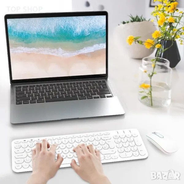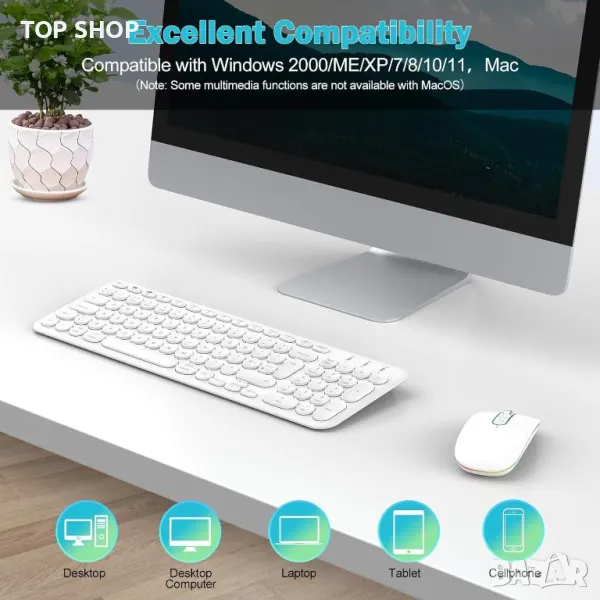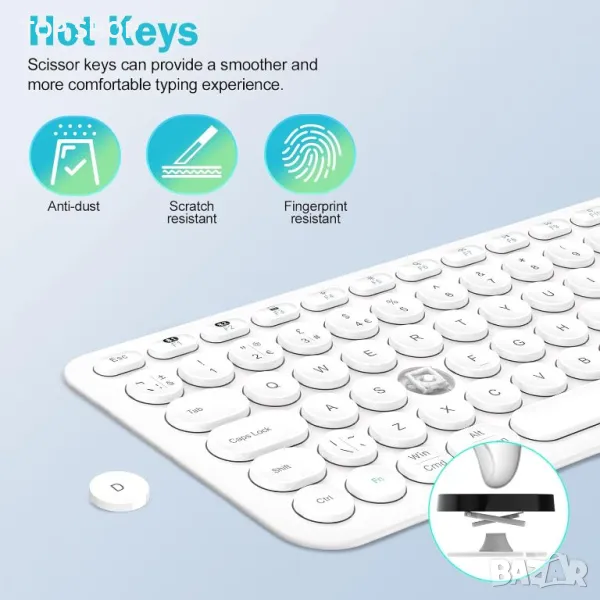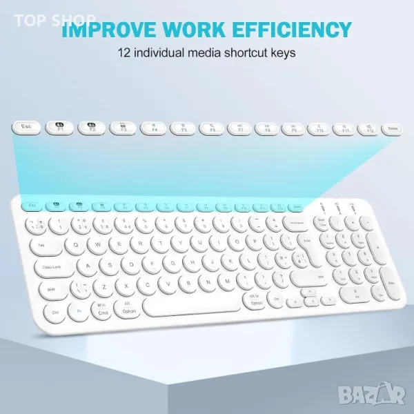 PINKCAT Акумулаторна безжична клавиатура, 2.4G/Bluetooth