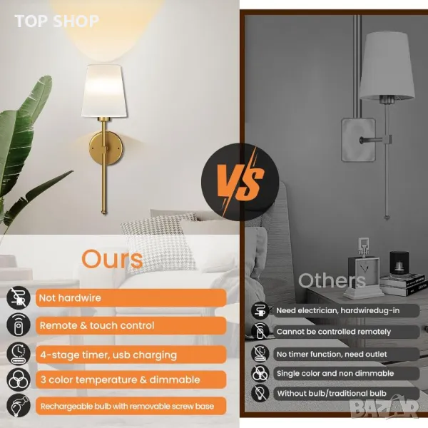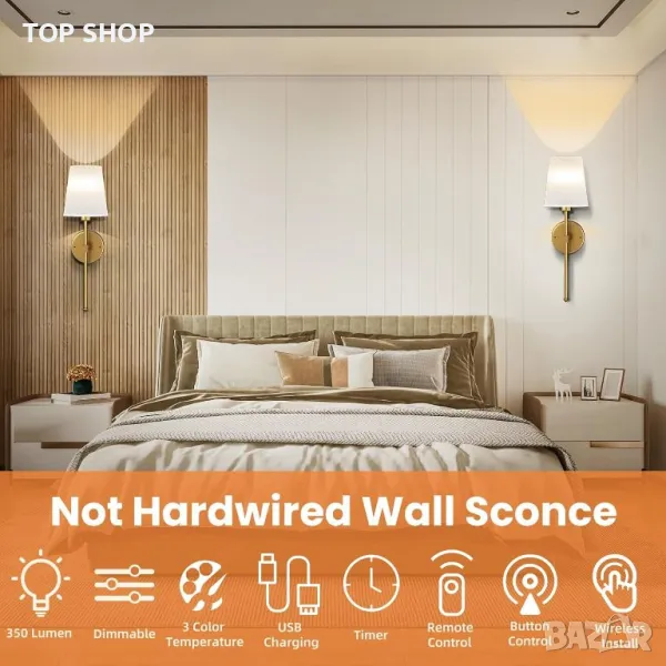 LGMCF Комплект от 2 акумулаторни стенни лампи с 2000mAh димируеми, разглобяеми и дистанционно