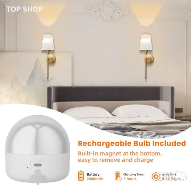Безжичните стенни аплици LGMCF разполагат с 2 броя E27 акумулаторни крушки с разглобяем дизайн, което елиминира необходимостта от окабеляване и електротехници. Оборудван с акумулаторна батерия от 2000 mAh, той осигурява 8-36 часа непрекъснато осветление, идеално за спални, бани и коридори. Дистанционното управление позволява лесна работа, с регулируема цветова температура (3000k/4500k/6000k) и нива на яркост (30%/60%/100%). Включва функция за памет за настройки на яркостта и 4-стъпков таймер (15/30/60/120 минути). Изработен от здрав метал с абажур от бял плат, той е лесен за инсталиране и е идеален за различни домашни приложения, като подобрява както осветлението, така и декора.