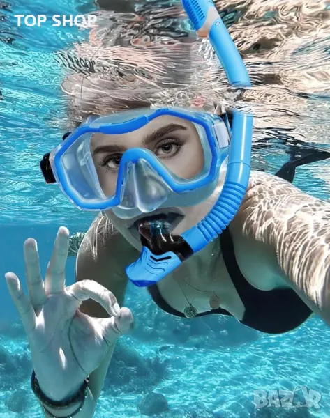 Lealinga Комплект 2 броя маска и шнорхел за гмуркане, плуване, синьо, зелено