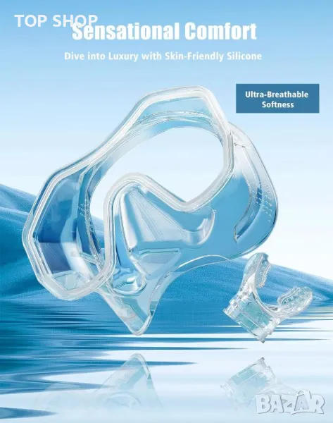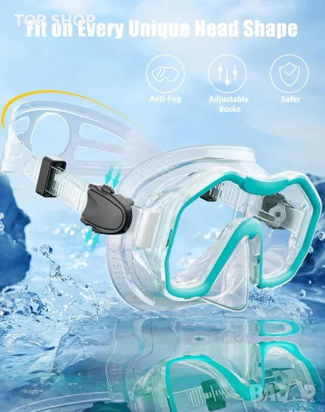 Прозрачната панорамна маска за шнорхел разполага с филм против замъгляване и устойчиво на удар закалено стъкло за ясна и безопасна подводна гледка. Неговата мека силиконова пола и регулируема лента за глава осигуряват удобно, непропускливо прилягане, докато сухият горен дизайн против пръски с еднопосочен клапан и плаваща топка предотвратява навлизането на вода в тръбата. Хранителният силиконов мундщук е нетоксичен, без мирис и ергономичен за дълготраен комфорт. Идеален за всички ентусиасти на гмуркането с шнорхел, този издръжлив комплект маска и шнорхел е идеален за гмуркане с шнорхел, гмуркане и плуване.