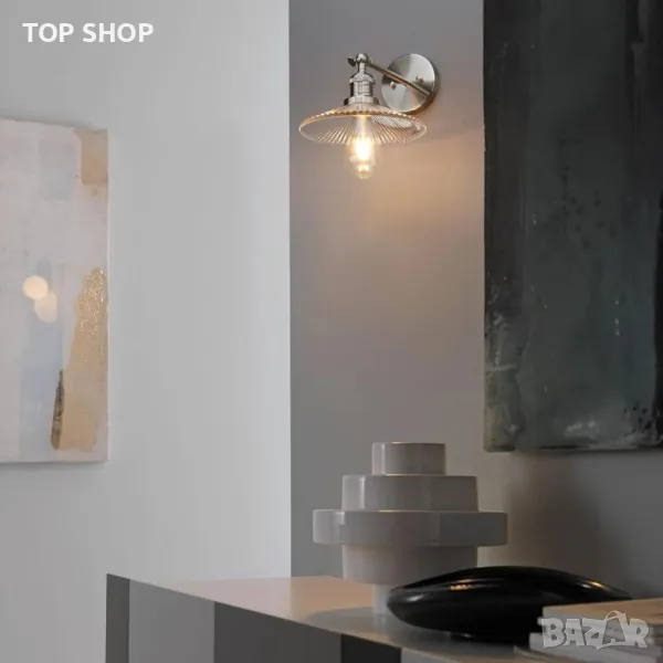 Yosoan Индустриална ретро стенна лампа от оребрено стъкло