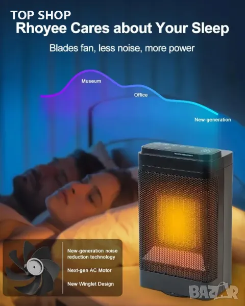 Електрически нагревател UZIMOO - 1500 W с дистанционно, 70° осцилация, 12H таймер, 3 режима