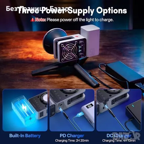 Съвместимост с ZY и Bowens модификатори (с адаптер), 1/4'' резба за стативи