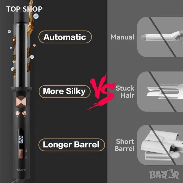 Автоматични маши за коса webeauty, 360°, 32 mm, LCD дисплей, 140-220 С