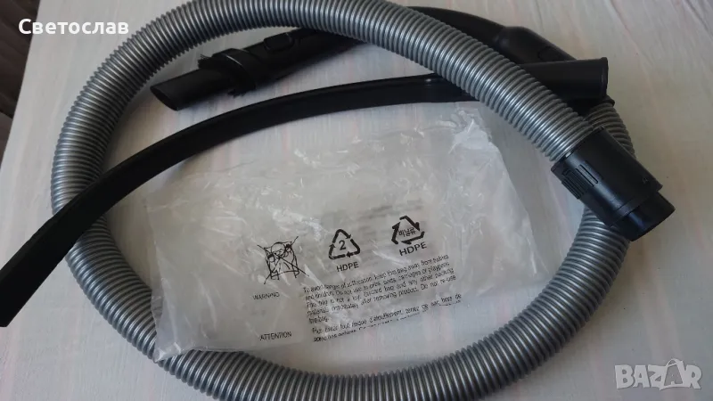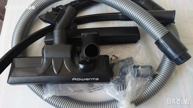 Прахосмукачката е нова, в запазен търговски комплект с резервни торбички и 5 накрайника.