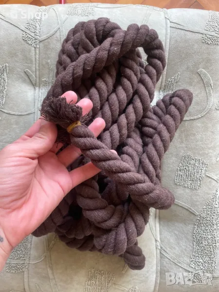 Дълго въже памучно памук 6 метра кафяво плетено, снимка 1 - Други спортове - 49968006 Дълго въже памучно памук 6 метра кафяво плетено, снимка 2 - Други спортове - 49968006 1/2