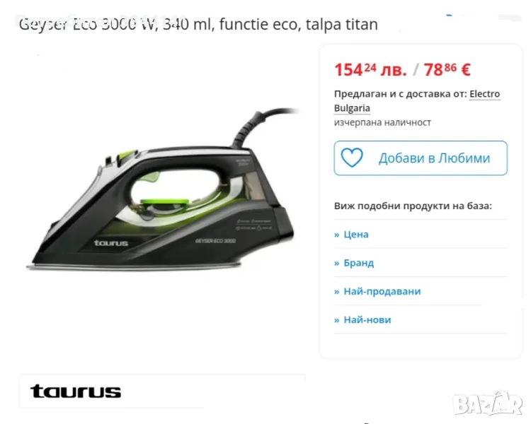 Чисто нова ютия Taurus geyser eco 3000.https://www.emag.bg/geyser-eco-3000-w-340-ml-functie-eco-talpa-titan-bbacdc40/pd/DT5LM2MBM/