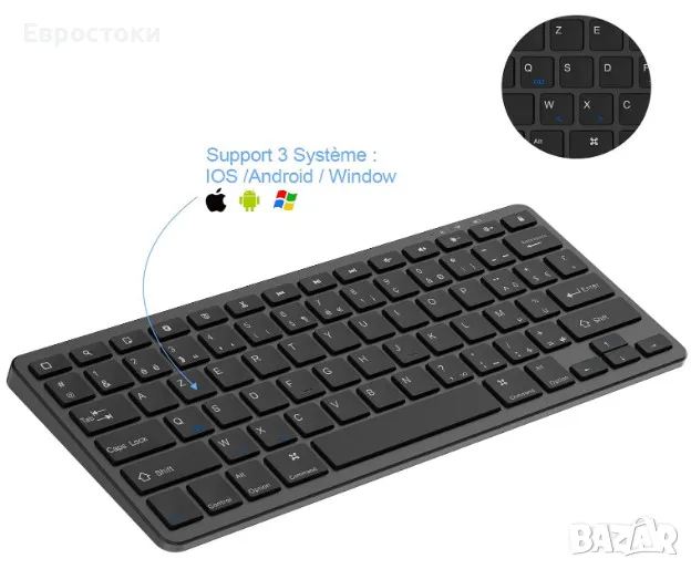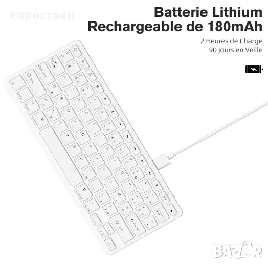 клавиатура СС, акумулаторна Bluetooth клавиатура за iOS/ Windows/ Android, ултра тънък дизайн.