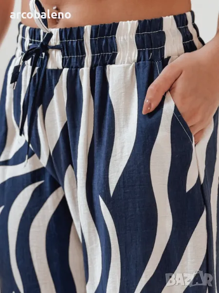 Панталон от ефирен плат с висока талия и модерен модел, който пасва на празничния стил, е идеалният избор за топлите дни. Удобен еластичен колан, връзки и декоративни джобове повишават комфорта при носене. Леката материя позволява на кожата да диша, а простата, широка кройка фино подчертава предимствата на фигурата, добавяйки стройност и разкрепостеност. Перфектен за горещите пролетни и летни дни.