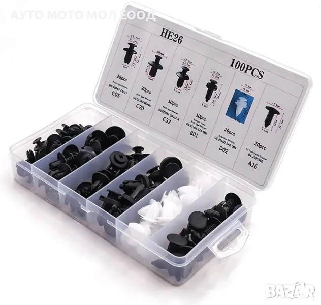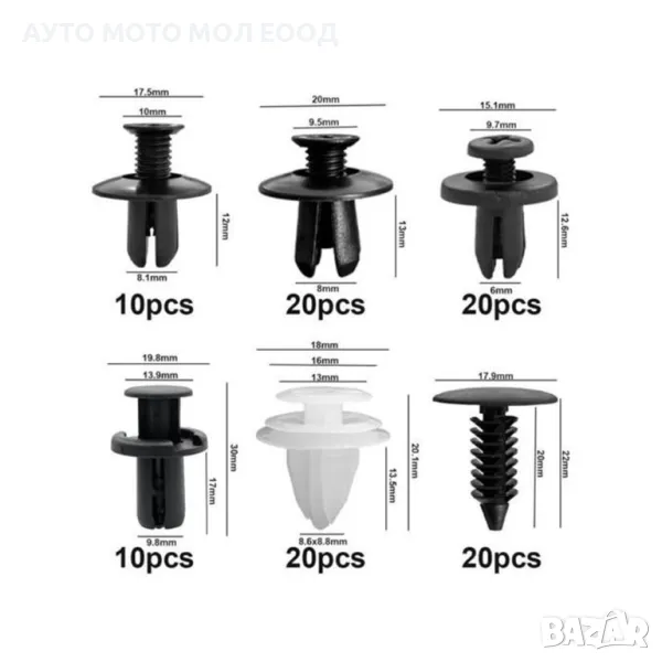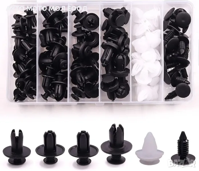 Комплектът 100 броя с автомобилни щипки се използва за тапицерия, врати, брони, калници, подмяна на капака на двигателя и калника. Те са подходящи за здраво захващане на всичко, което пасва заедно!