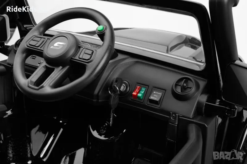 Изключителна мощност с четири 12V (45 W) мотора, осигуряващи впечатляваща динамика на шофиране. Лесно зареждане с включеното зарядно.