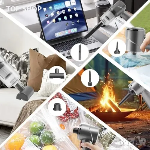 3 в 1 функция: Работи като прахосмукачка, въздушен бластер и вакуумна помпа с включени различни накрайници.
