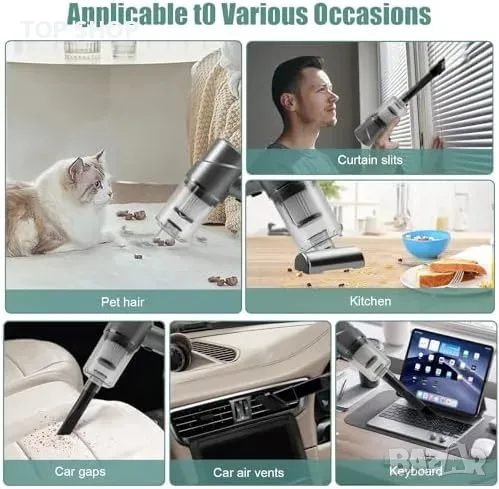 Мощно засмукване 7000Pa: Подобрен дизайн за ефективно почистване на труднодостъпни места – подходящ за кола, дом, клавиатури и още.