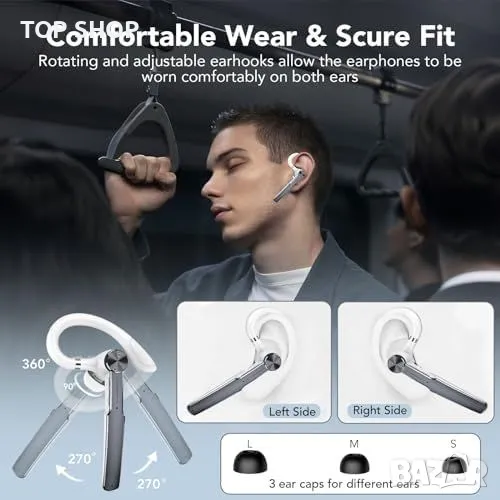 Гъвкав дизайн: Ротация на 90° слушалка, 180° кука за ухо и 270° ръкохватка за удобство.