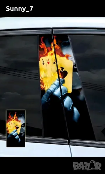 Комплект-2бр. Водоустойчиви винилови стикери за кола устойчиви на надраскване.*Слънцезащитни декоративни стикери,подходящи за B-колони и врати.*Цена-20 лв.за комплект от 2 бр.стикери