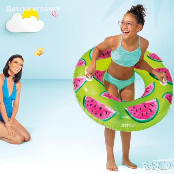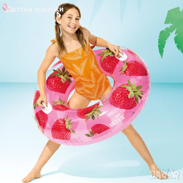 Име: Надуваем пояс Intex, диаметър 1.07 м, PVC, тропически плодове, жълт/зелен/розов