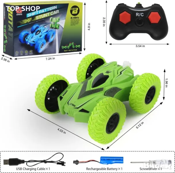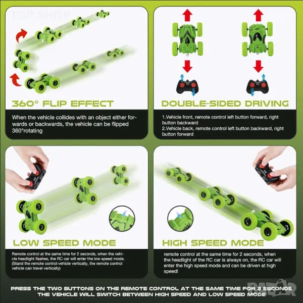 Кола с дистанционно управление 2,4 Ghz, 360° двустранна каскадьорска Rc кола за 3-8 години