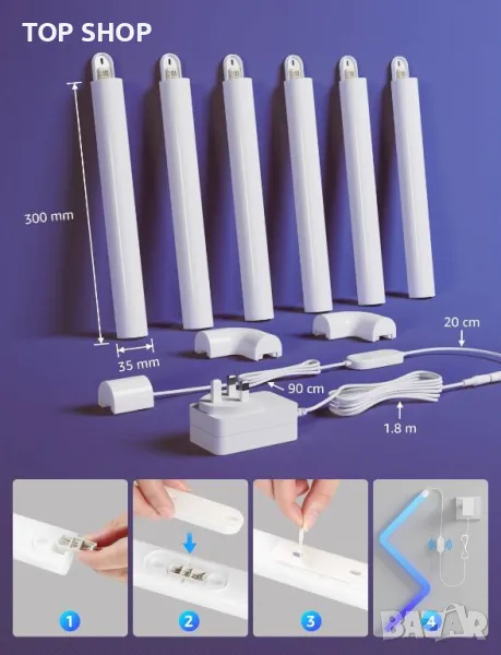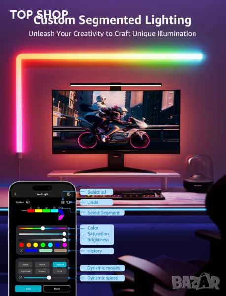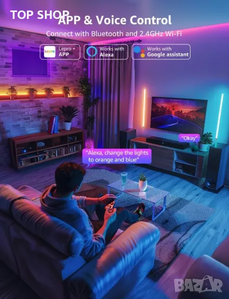 Интелигентната стенна лампа Lepro WL1, оборудвана с алгоритъма LightGPM AI, осигурява светлинни ефекти MagicColor, отговарящи на вашите емоции и команди. Това устройство поддържа гласов контрол чрез приложението Lepro+ и е съвместимо с Alexa и Google Assistant, като предлага динамични светлинни ефекти, базирани на изражения на лицето и гласови подкани. Той включва LightBeats Music Sync, позволявайки на светлините да се синхронизират интелигентно с музика или звук от игри. Персонализирайте осветлението с регулируем цвят, наситеност и яркост за всеки сегмент чрез приложението Lepro+ и оформете настройката на светлината с помощта на включените 6 сегмента и 2 ъгъла. Допълнителните функции включват графици за осветление за автоматично включване/изключване, настройки за събуждане и спиране и групов контрол с опции за споделяне на устройства. Забележка: Съвместим само с 2,4 GHz WiFi и не поддържа приложенията „Smart Life“ или „Lepro LampUX“.