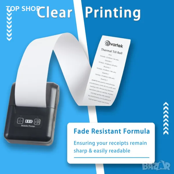 AVARTEK 57 x 40 mm термична хартия за разписки за PDQ машина за кредитни карти, POS и др., 200 ролки