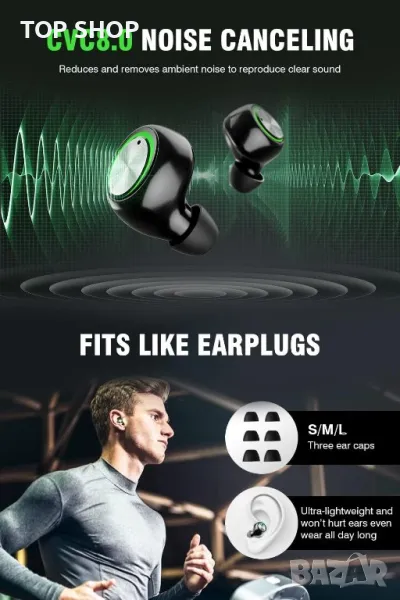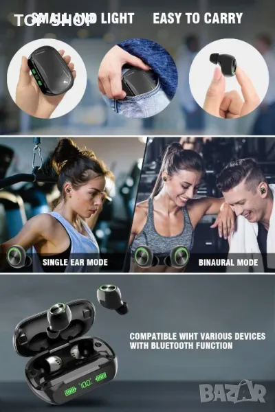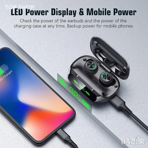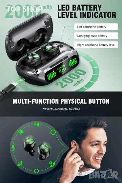 Тези безжични слушалки разполагат с намаляване на шума CVC8.0 и LED дисплей на батерията за ясни разговори и статус на батерията. С огромните 200 часа време за възпроизвеждане и Bluetooth 5.3, те осигуряват стабилна връзка и висококачествен звук. Насладете се на HiFi стерео звук и изберете между използването на двете слушалки или само едната. Те са IP7 водоустойчиви и съвместими с различни устройства. Интелигентната работа позволява лесно управление на музиката и разговори със свободни ръце, което ги прави универсален избор за вашите аудио нужди.