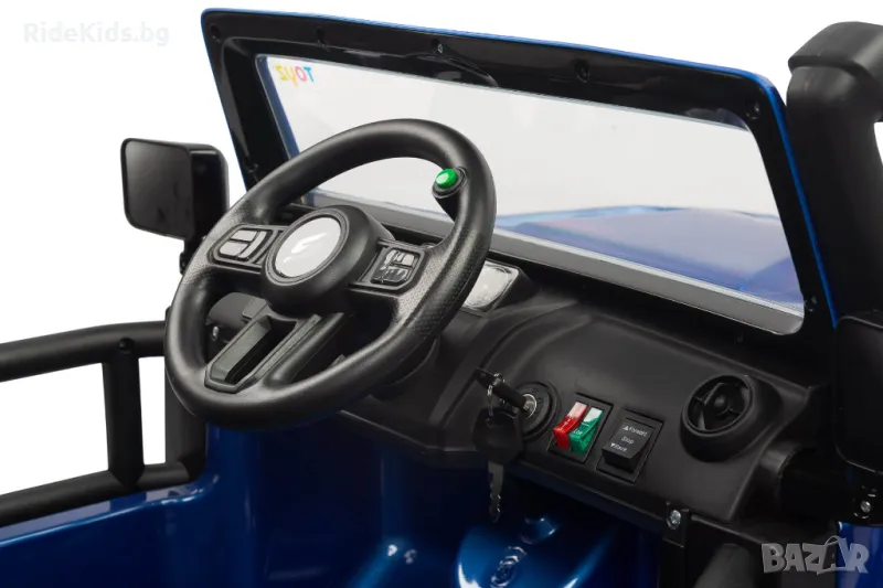 Изключителна мощност с четири 12V (45 W) мотора, осигуряващи впечатляваща динамика на шофиране. Лесно зареждане с включеното зарядно.