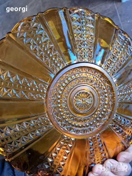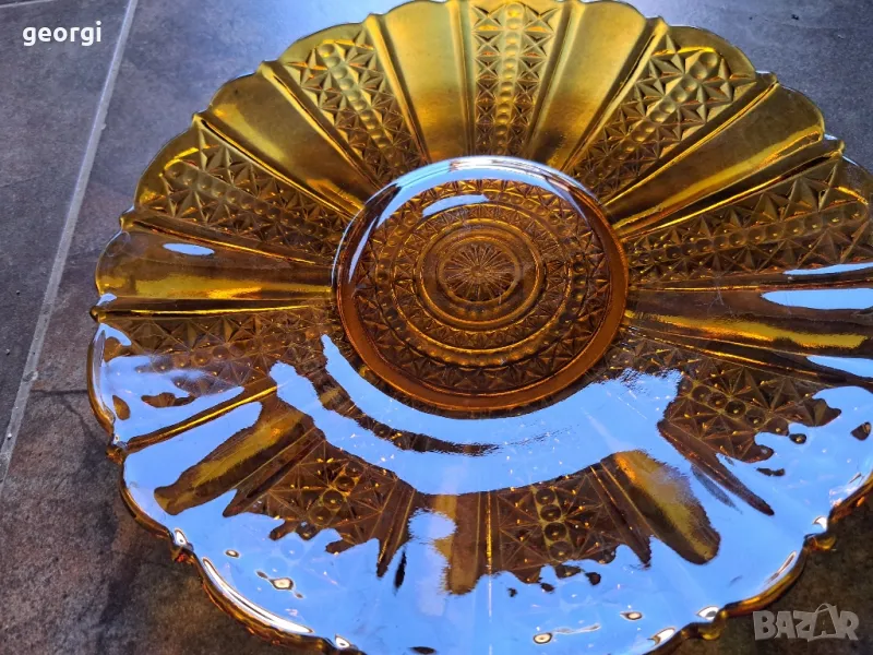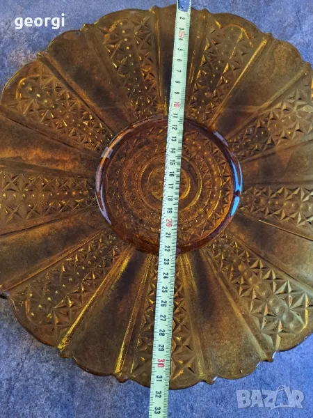 голямо стъклено плато цвят кехлибар 21/6 → Обява 49971710